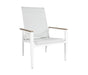 Arcade evokes the sweeping feeling of vitality and excitement in a fresh new sling collection. Featuring a powder-coated aluminum frame with a contemporary tapered leg and new Mica or Umber SOL Teak™ accents, it articulates the concept that simplicity is truly the ultimate sophistication. Arcade is constructed with lightweight Batyline® Eden Charcoal sling on a Sherwin-Williams® Black aluminum frame with new Mica SOL Teak™ armrest accents or Batyline® Eden Seagull sling on a Tiger Drylac® White aluminum frame with new Umber SOL Teak™ armrest accents.