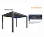 Pergola R is designed for residential use & is available in a 13' x 10' x 9' size in alluring Tiger Drylac® Storm finish. With 4000K LED interior perimeter lighting included & a motorized louver top with remote control, wind & rain sensors for open-close & tilt functionality, Pergola R provides sun, shade & rain protection. Its durable, powder coated aluminum construction, wind rating of 80 kmph & snow load capacity of 16 lbs psf plus external ground mount, along with customizable options such as side screen panel or slat panel, make it an ideal haven for any home outdoor zone!