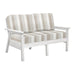 Sleek, modern and clean, this outdoor loveseat frame is perfect for any outdoor space! Made of recycled plastics this chair is durable, comfortable and meant to withstand the outdoors.